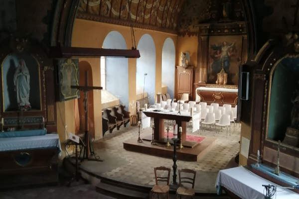 Autour de l’église se trouvait l’ancien cimetière, avant son transfert à la fin du XIXe siècle puis la réalisation de la place publique et parking.