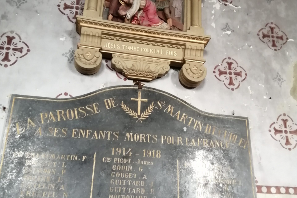 Une statue de pierre Saint-Martin, évêque de Tours de la deuxième moitié du 4e siècle, datant du 17e occupait la niche au-dessus du porche de l’église.