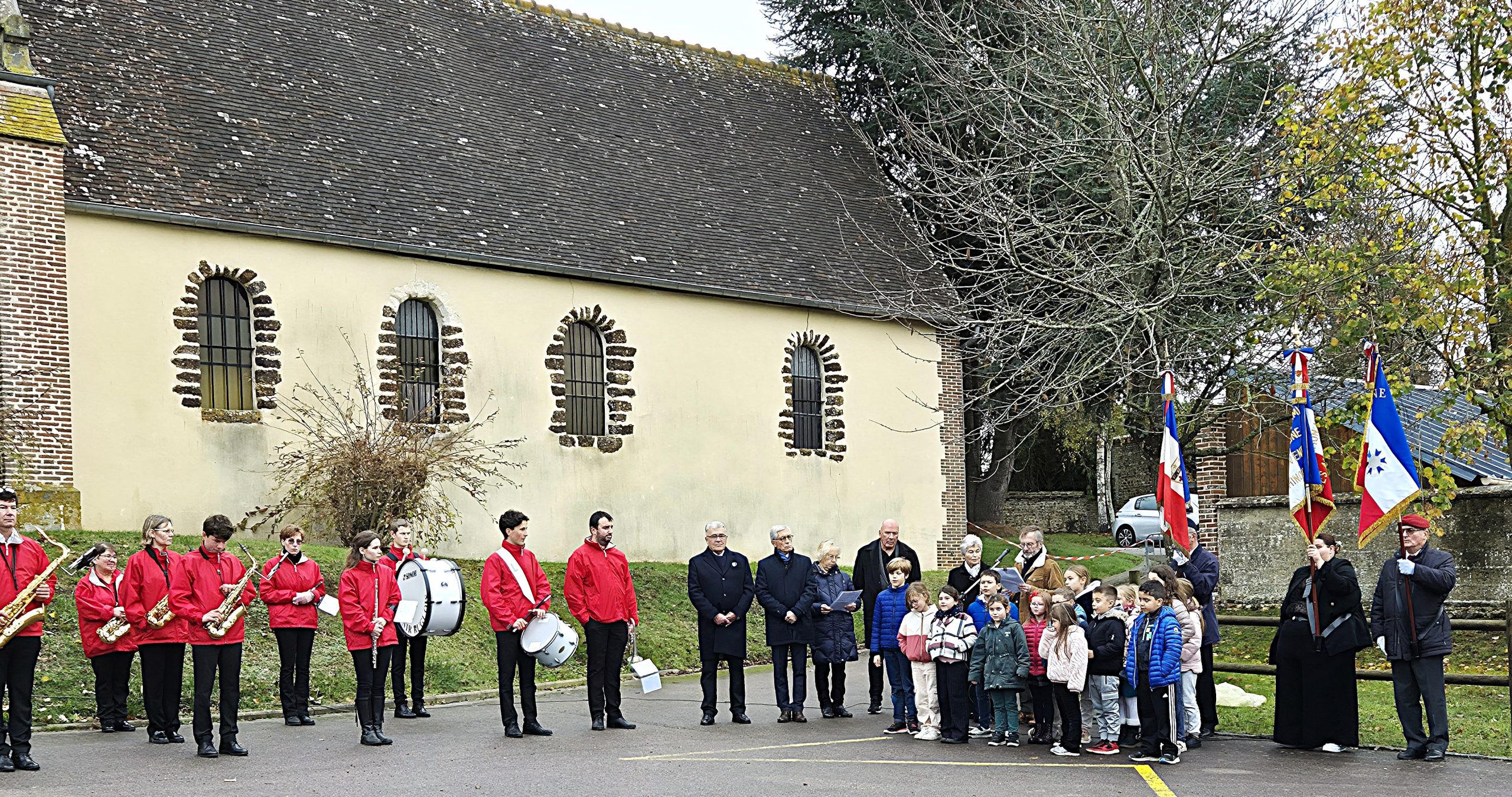 L’harmonie a interprété la Marseillaise, résonnant comme un appel au souvenir pour les toutes les personnes présentes, les municipalités de St-Martin-d’Ecublei & de St-Sulpice-S/Risle, Philippe Van-Hoorne Conseiller départemental et Maire de L’Aigle, les porte-drapeaux, les gendarmes, les écoliers, les Ecubléens venus nombreux, rappelant à chacun l’importance de préserver et de transmettre la mémoire collective.