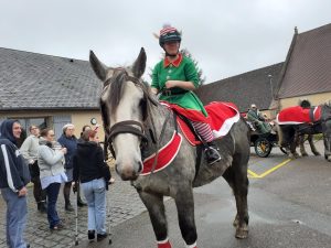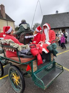 Le Père-noël est venu en calèche accompagné d’un lutin farceur à cheval